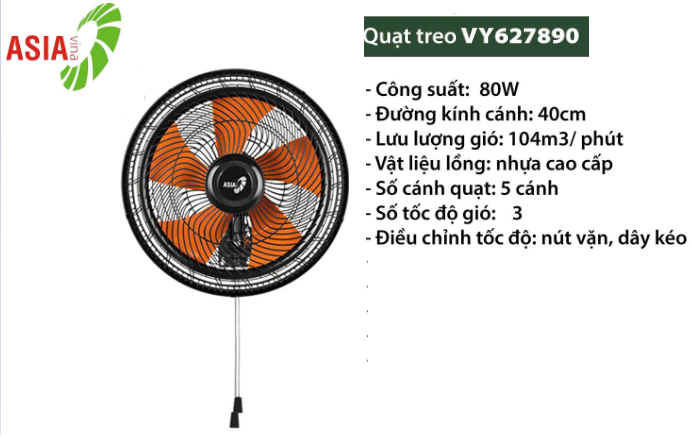 THÔNG TIN SẢN PHẨM: Quạt treo ASIA VY627890 80W (đen)